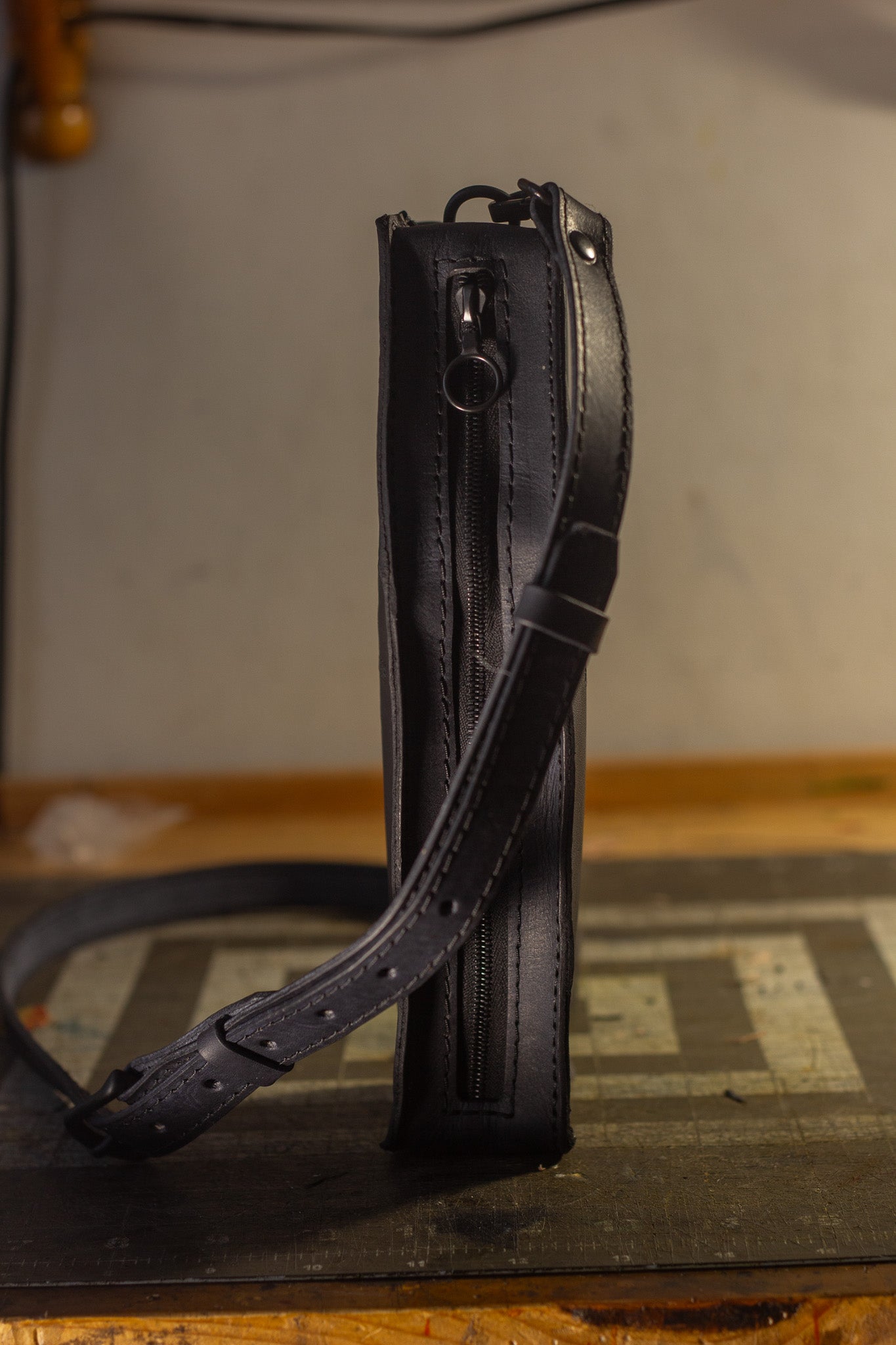 A 10” x 5.5” x 2” zippered coffin bag that can be worn across your chest, around your waist, or at your side