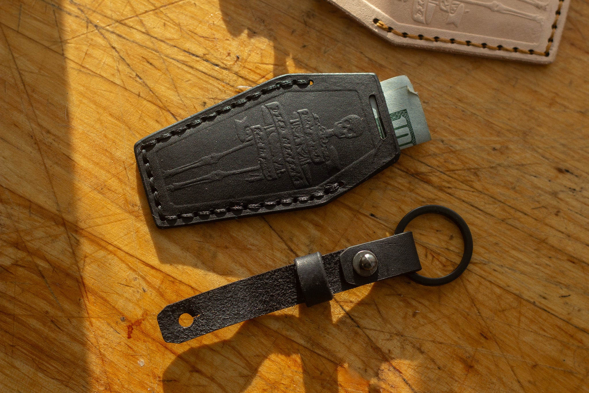 A cash stash keychain with a secure strap for carrying around your emergency cash, mad money, or lucky bill